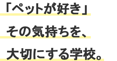 「好き」という気持ちは学びのスタート。PETSはその想いを大事にしながら、動物にも学生一人ひとりにも真剣に向き合い、「かわいい」だけで終わらない現場につながる学びを共につくっていきます。そして、その「好き」はやがて動物や飼い主さんからの「ありがとう」に変わり、人の役に立つ実感となって仕事へと広がっていきます。