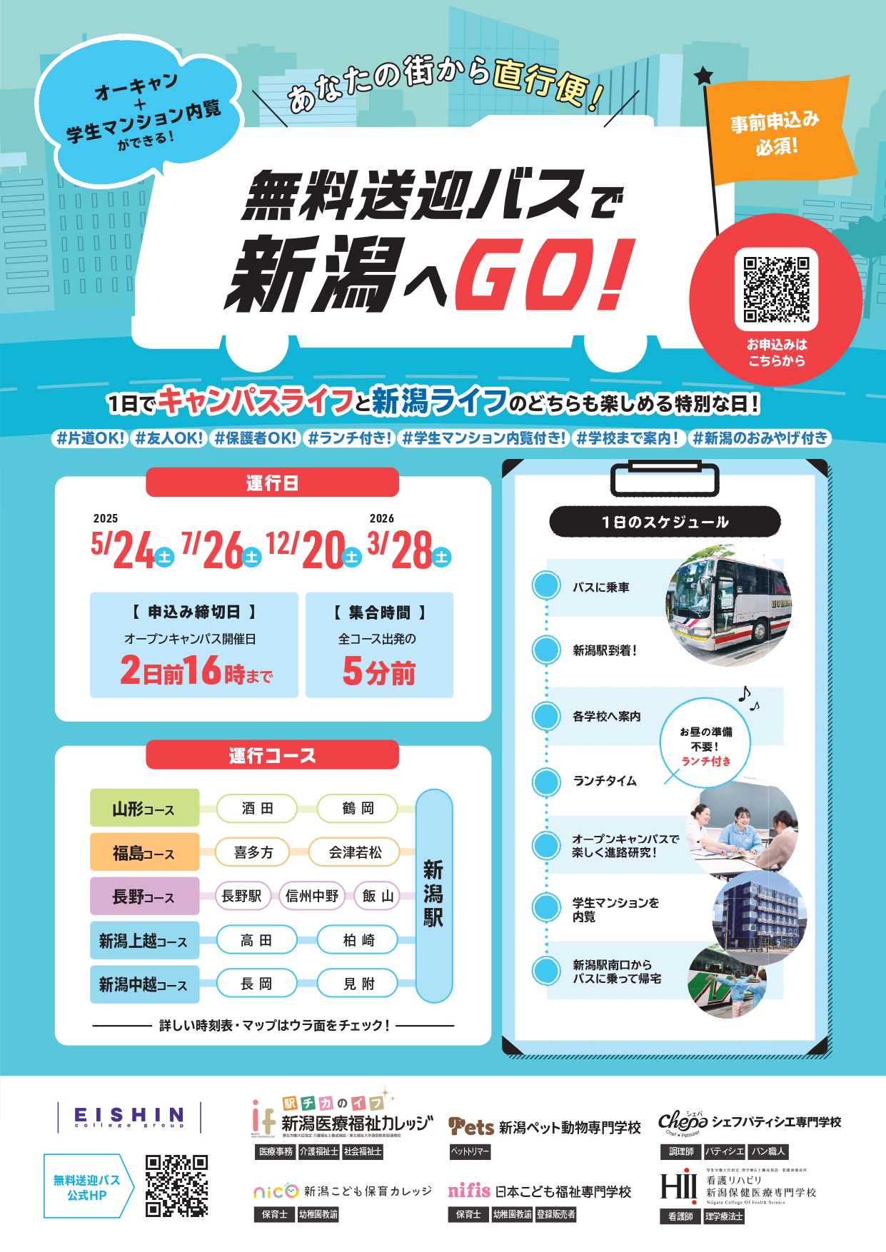 5/24(土)無料送迎バスでオープンキャンパスに行こう♪