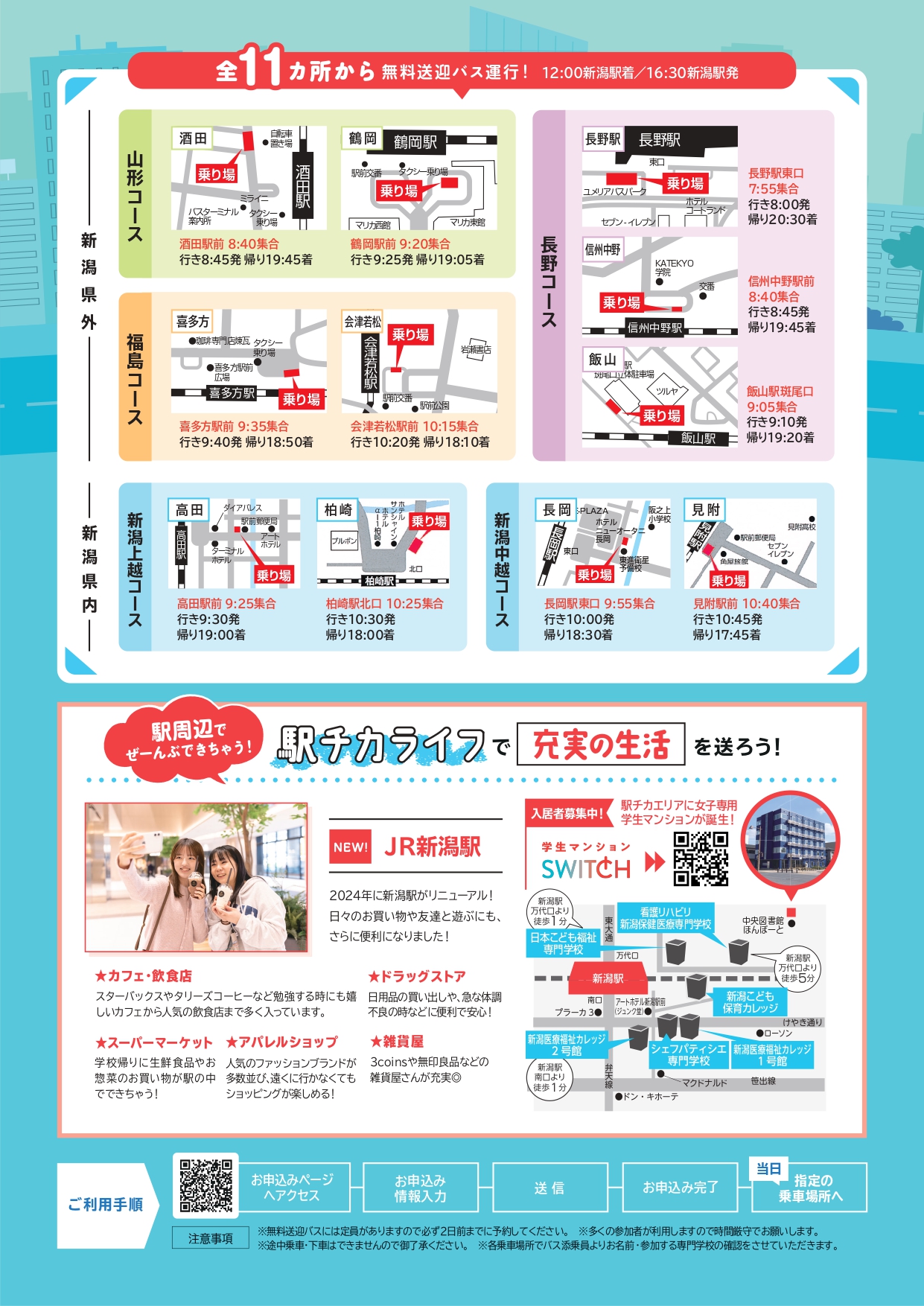 新潟県の上越地域・中越地域、そして山形・福島・長野県にお住まいの方に便利な無料送迎バスが運行します