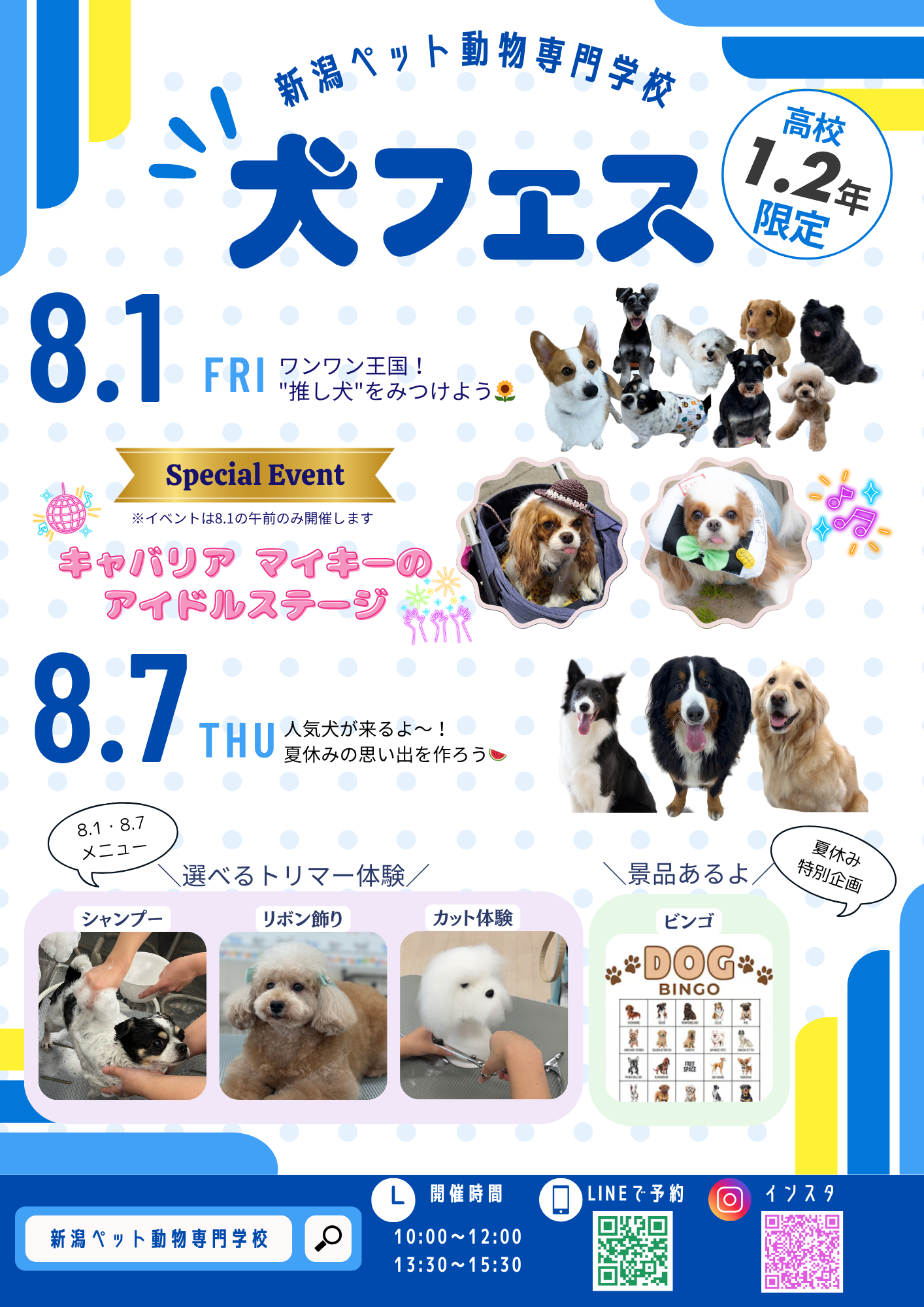 8/1(金)・8/7(木)は、高校1・2年生限定のオープンキャンパスを開催します🐶✨