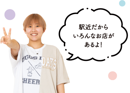 学校帰りに友達とおしゃべりをしたり買い物ができるスポットがたくさん!