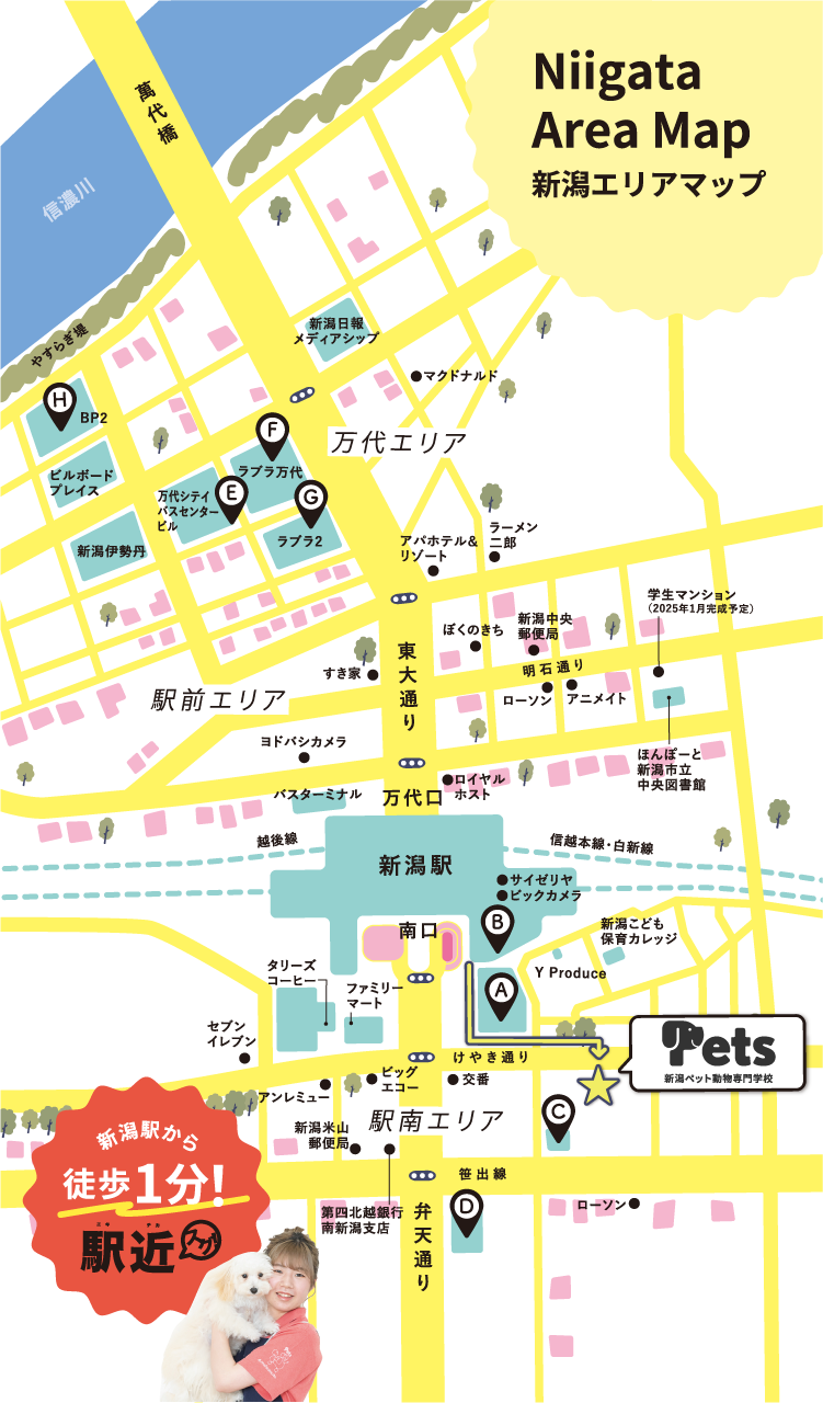 新潟駅からPetsまでは、なんと徒歩1分!!