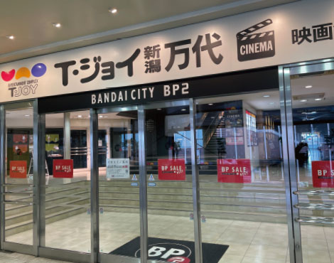 さまざまな商業ビルが立ち並ぶ万代エリア。信濃川のリバーサイドには映画館も!学校帰りに気楽に立ち寄れて映画を楽しめます。